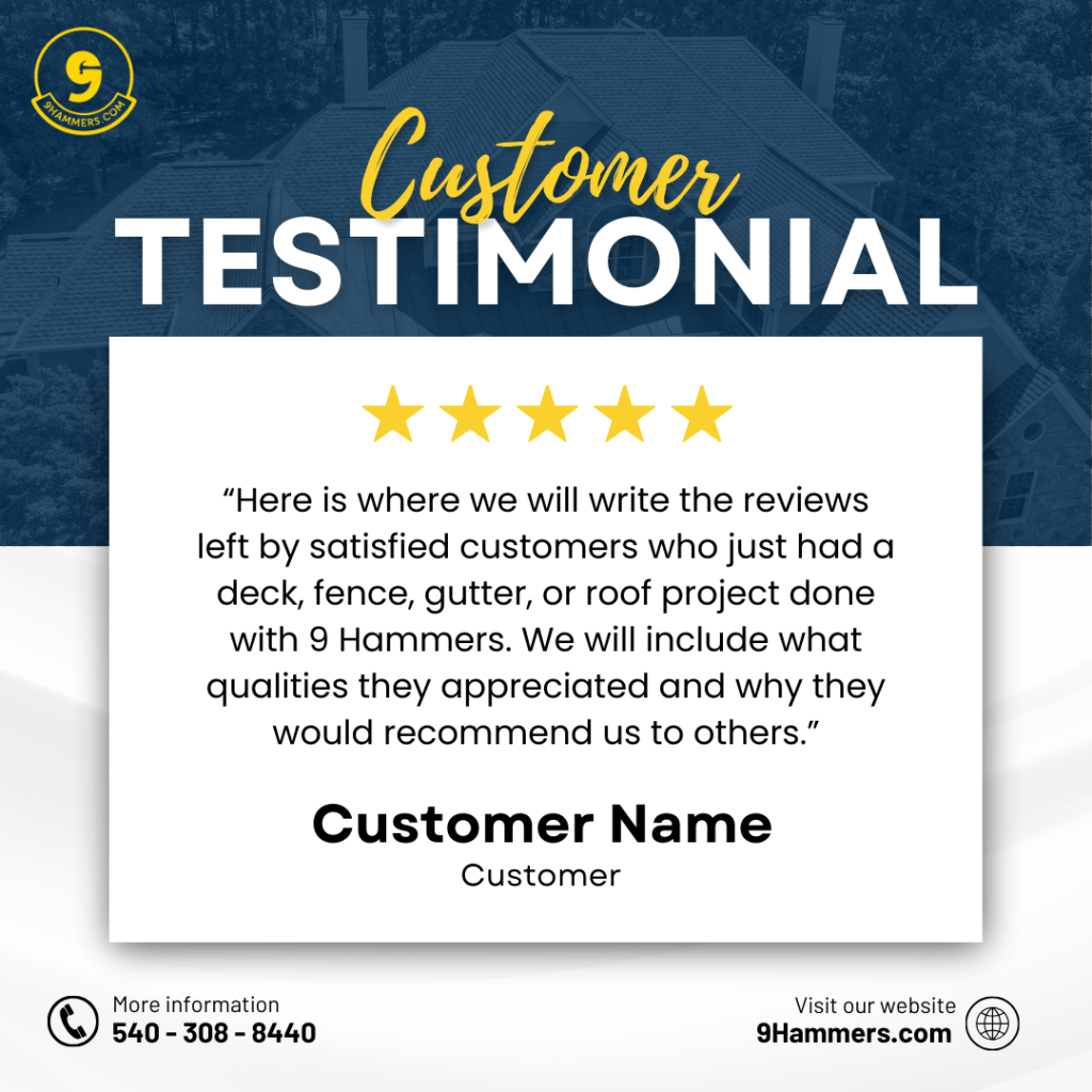 A contracting company serving Fredericksburg, Virginia, where I worked on the production team to promote their various exterior home services.